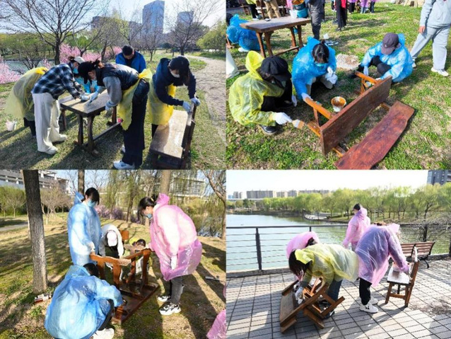 随后,师生们认真擦拭、精心打磨、仔细上漆,斑驳老旧的桌椅焕发出新的光彩。活动中,大家齐心协力、相互帮助、有序分工,配合默契,一边切磋手艺一边交流学习,在刷漆翻新中体味着劳动的快乐。
