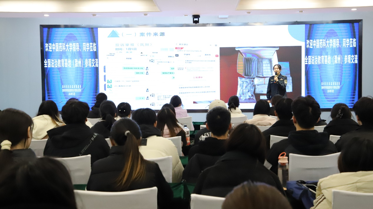 在实景馆的参观中,滁州市市场监督管理局模拟假劣药生产车间以及制假售假警示教育点,让师生近距离感受到药品打假成果,直观地体会到生产销售假劣药给消费者生命和财产安全带来巨大危害。