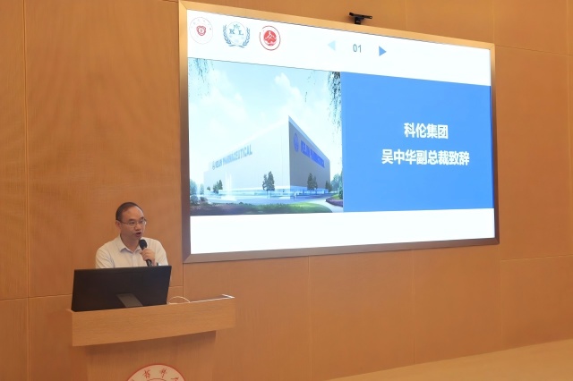 科伦集团副总裁吴中华先生向与会师生介绍了科伦药业的三大核心业务与科伦江苏新工厂的国际化战略,对科伦集团与KY开元集团官网合作的产教融合人才培养改革项目表达了殷切期待。