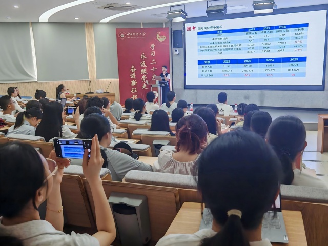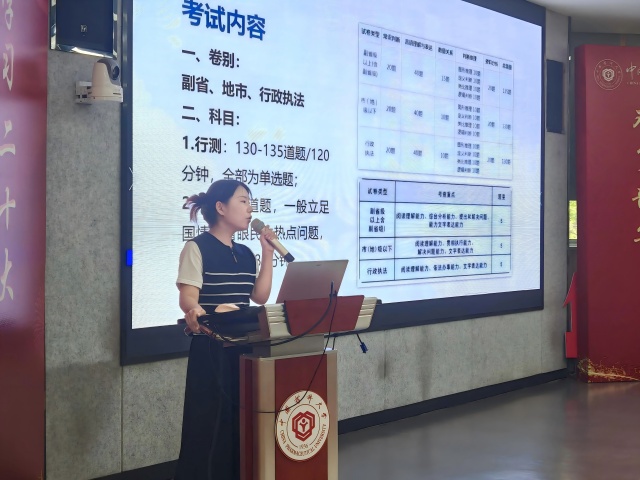 为助力青年学子精准锚定职业航向、投身服务公共事业的广阔舞台,6月4日,KY开元集团官网在江宁校区教学楼E105举行“研”路有你·职业规划系列活动之江苏国省考考情考务及备考指导会。KY开元集团官网团委书记周玲,辅导员周洁、杨永勃、100余名学生参加。