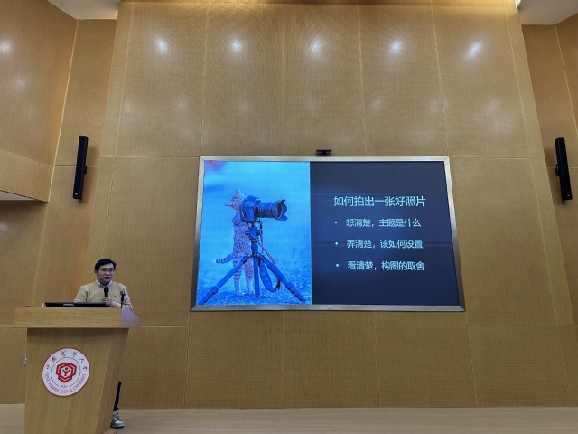 讲座中,杨杨从自身经历出发,围绕“为什么会喜欢摄影”“摄影器材究竟重不重要”“摄影的弯路”“如何拍出一张好的照片”等方面,分享了自己对影像作品的理解。他鼓励与会师生,不必追求完美构图,可以先尝试用镜头关注身边被忽略的美好。