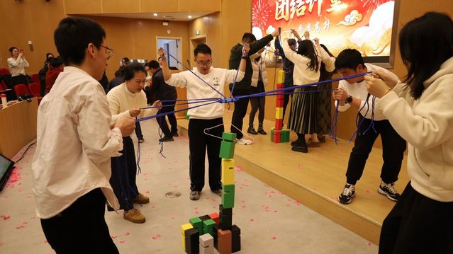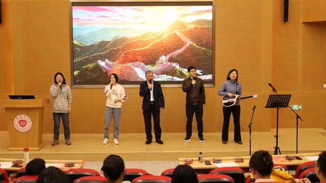 各系、中心准备的节目精彩纷呈。学工团队以活力四射的舞蹈《顺启新年》拉开帷幕,瞬间点燃全场热情;新入职教师代表的《我们都是追梦人》,唱出了青春的理想与担当;工商管理学系教师代表一曲《真心英雄》,以温暖旋律致敬平凡中的不凡;经济贸易系教师代表带来《明天会更好》,寄托对未来的共同期盼;药事管理系教师代表的《后来》,以经典旋律唤起共鸣,传递坚韧与希望;公共管理系教师代表演绎的《如愿》,动情而真挚,表达了对前辈的致敬与对未来的期待;实验中心与院办合作的互动游戏《团结计量——步步高升》,设计巧妙、趣味十足;最后,学院领导班子合唱《我和我的祖国》,铿锵歌声凝聚人心、鼓舞斗志。