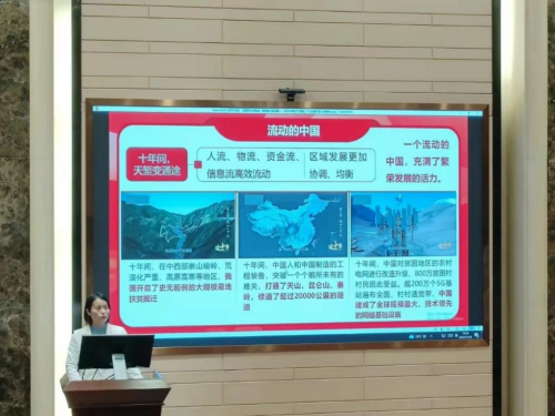 随后,丁素军书记作题为思想伟力领航向,擘画复兴新蓝图的专题党课。她简要介绍了中国共产党历次党代会的基本概况详细阐述了党和国家过去五年的工作情况和新时代十年的伟大变革,带领师生专题学习党的二十大精神,并重点解读了中国式现代化的核心要义和丰富内涵。她希望同学们能够在学习和生活中坚定理想信念,树立远大抱负,努力开拓视野,锤炼过硬本领积极投身实践活动,在未来能够勇敢接过全面建设社会主义现代化国家的接力棒