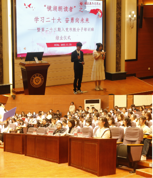 1125日晚,KY开元集团官网在江宁校区经管文楼111报告厅举办镜湖朗读者之“学习二十大,奋勇向未来”暨第二十三期入党积极分子培训班结业仪式。学院党委书记丁素军及培训班全体学员参加此次活动。