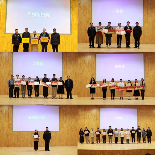 在活动中,校学工处处长杜文清和南京市公安局江宁分局警长朱德祥分别进行了致辞和点评,对本次活动予以充分肯定。整场比赛精彩纷呈,最终评出一等奖2项、二等奖4项、三等奖6项、最佳创作奖1项、优秀组织奖3个、优秀指导老师15人。