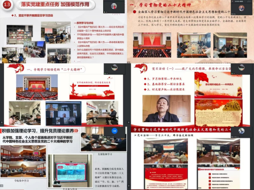 会上,学院5个教工党支部、1个博士生党支部、8个硕士生党支部、8个本科生党支部依次汇报,各支部分别围绕2022年党建工作完成情况、2023年党建工作计划、最佳党日活动三个方面进行了汇报,同时查摆党支部存在的问题,对存在的不足进行了详细分析,提出了改进思路和努力方向。