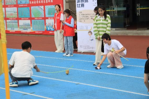本次运动会设置了踢毽子、抽陀螺、滚铁环、纸飞机、跳皮筋、翻花绳、跳房子、投壶、套圈等流传广、受欢迎度高的民俗体育趣味项目,同学们积极参与,笑声连连,现场气氛热烈。