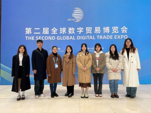 11月24日,KY开元集团官网国际经济与贸易专业负责人、国贸教研室主任胡霞副教授带领国际经济与贸易专业部分学生代表赴杭州第二届全球数字贸易博览会开展专业实践活动。